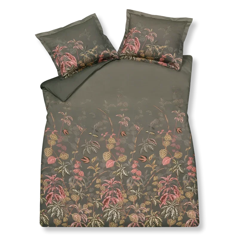 Planten in warme herfst tinten, zoals rood, oranje en bruin komen samen op het Beautiful Nerve multi dekbedovertrek. De warme tinten steken af tegen een neutrale achtergrond. De achterkant van het dekbed is effen van kleur en de kussens hebben aan de onderkant verschillende planten. Door het gebruik van digitale print, komen de kleuren en planten helemaal tot leven.