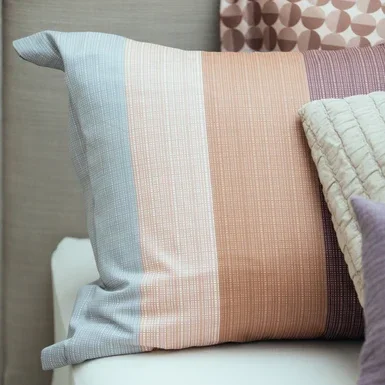 Relax moonscape dekbedovertrek heeft brede strepen met fijne lijnen eroverheen in verschillende tinten terracotta, paars, roze en grijs. De achterkant van het dekbedovertrek heeft dezelfde print. De kussens hebben aan beide zijden van elke tint een verticale streep. Relax moonscape dekbedovertrek van Vandyck laat je even wegzinken in een andere wereld...